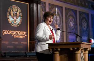 Kristalina Georgieva, managing director of the International Monetary Fund, told an audience at Georgetown University on Thursday that the IMF is once again lowering its projections for global economic growth in 2023, projecting world economic growth lower by $4 trillion through 2026.