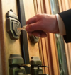 • Il met la clé dans la serrure.